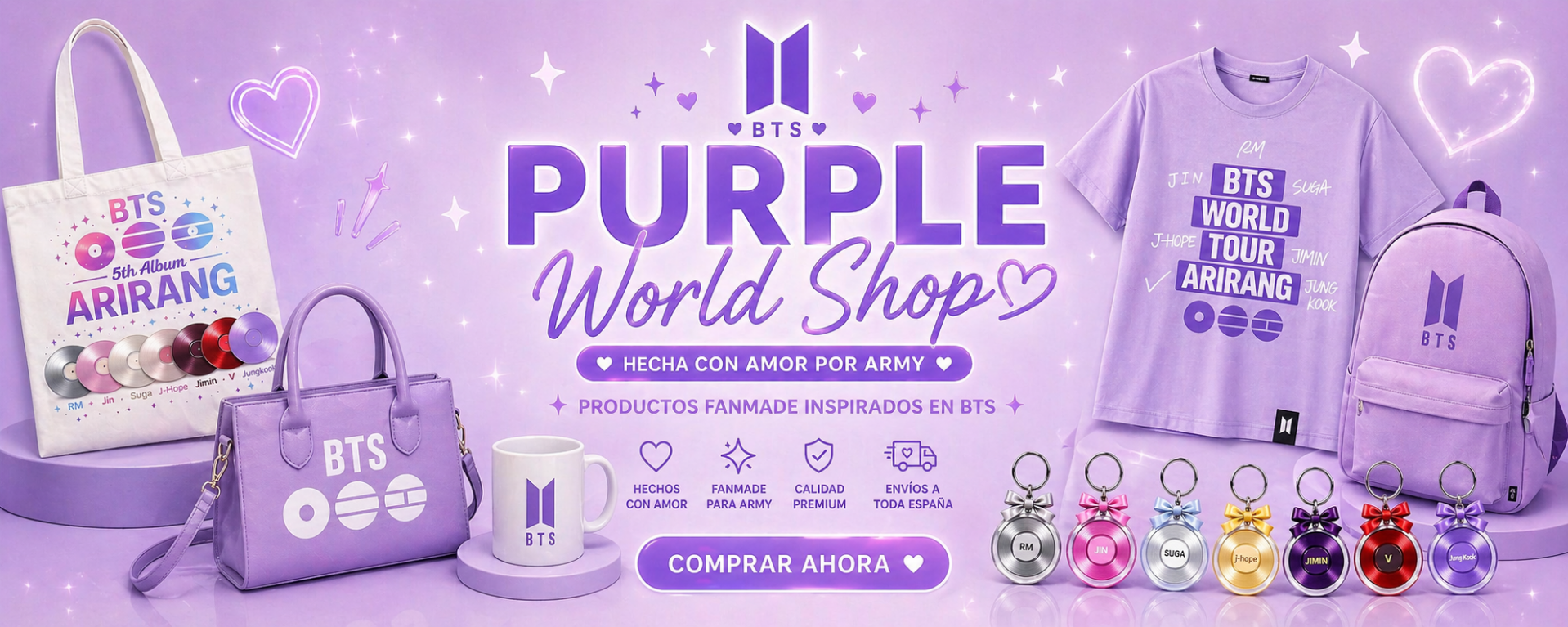 Además de nuestros llaveros, en Purple World Shop encontrarás una variedad de productos hechos a mano: camisetas con diseños únicos, pulseras personalizadas, vasos temáticos y tote bags perfectas para tu día a día. Todos creados con la pasión que ARMY merece.